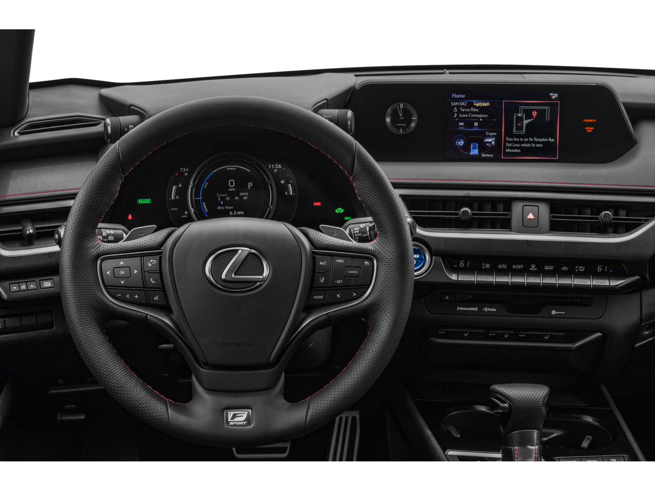 Step inside the UX 250h F SPORT and you'll be greeted by a cabin that exudes sophistication and attention to detail. The leather-wrapped steering wheel and shift knob, combined with the power-adjustable F SPORT front seats, create a driver-focused cockpit that will have you eager to take on the open road.