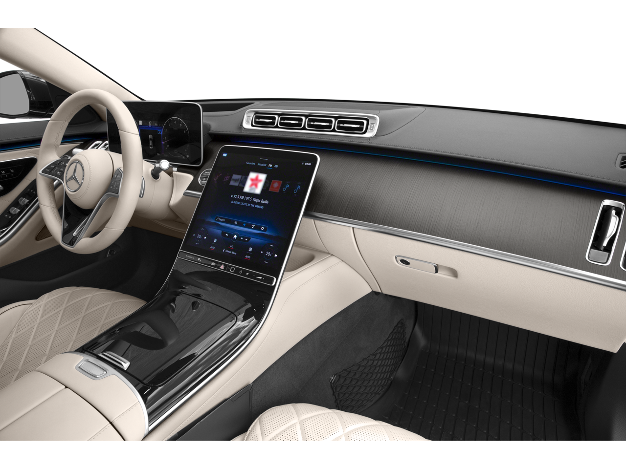 - Radio: MBUX Infotainment System w/Navigation -inc: 12.3 digital instrument cluster, 12.8" OLED touch center display, 'Hey Mercedes' voice control, augmented video for navigation, wireless charging front, wireless smartphone integration (Apple Carplay, Android Auto), Burmester 3D surround sound w/sound personalization, SiriusXM radio w/free trial period and online music streaming